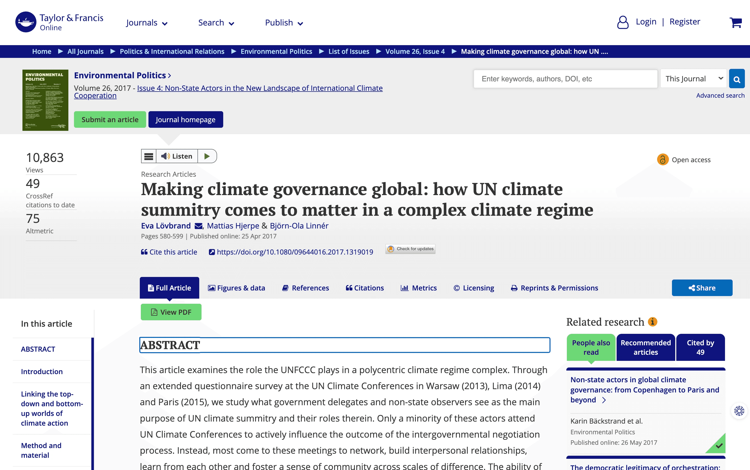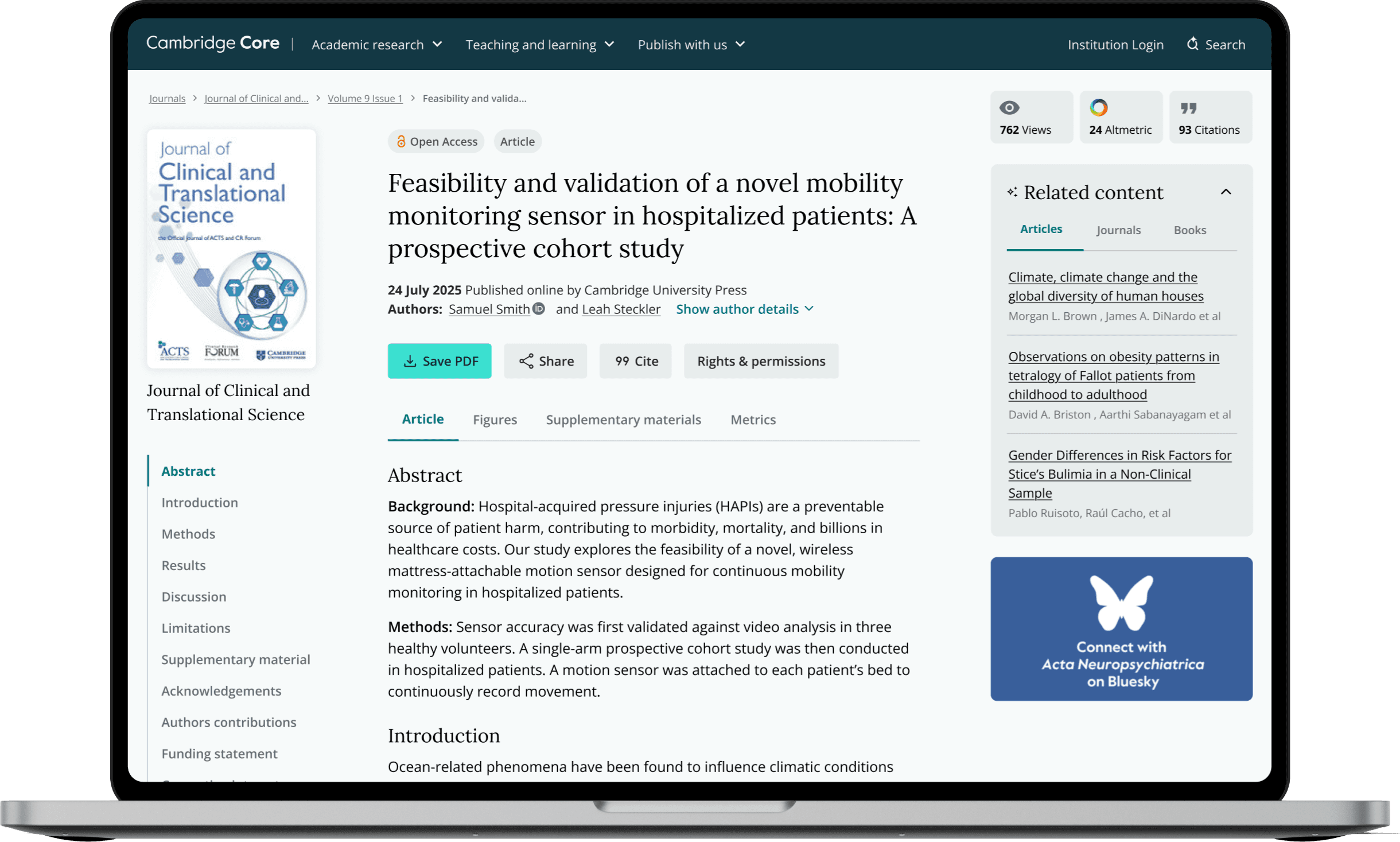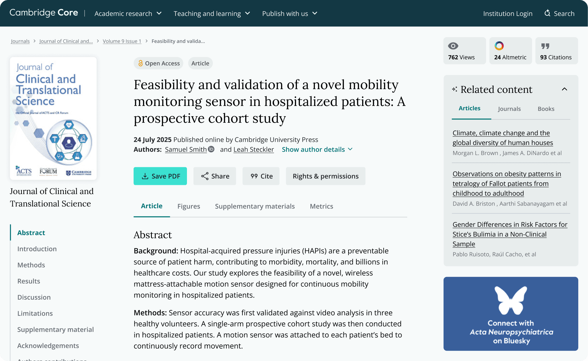I moved the key actions (Save PDF, Cite) out of the Article tab and placed them above the content. This ensures the main CTAs are always visible, no matter which tab is active.
